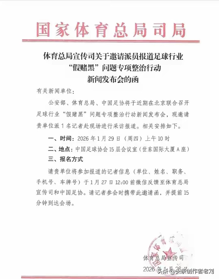 明天(1月29日)上午十点,中国足坛将迎来又一个决定性的时刻。公安部、国家体育总局与中国足协将联合召开新闻发布会,正式公布“假赌黑”问题专项整治的第二批处罚名单。这记酝酿已久的“重拳”,预计将在规模和深度上远超2024年的首批处罚,其力度可能直接重塑中国职业足球的版图。