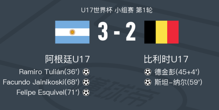 在北京时间今天凌晨结束的U17世界杯小组赛阿根廷对阵比利时的首轮比赛中,阿根廷最终3-2击败比利时,迎来开门红。一直关注阿根廷足球梯队战绩的梅西,听到这个消息当然非常高兴。