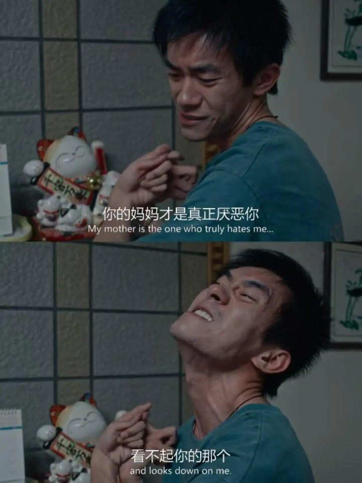 片中有一幕,刘春和母亲瞒着他,又生一女。他在医院逗妹妹时,被母亲大喊“不要动她”,并被推开。刘春和倍感失落,回忆起与母亲吵架的场景——在家中,他将多年的怨、恨、苦一股脑吐出。