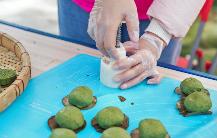 设在舞台一侧的文明集市,成为当天活动最具人气的焦点。十个特色展位依次排开,各具特色:梯面山水农产品展现绿色生态发展理念,蝴蝶谷文创将传统工艺与现代设计相融合,客家嫂手工制品传承匠心技艺……正在制作艾糍的村民笑言:“我们的手艺能受到这么多人喜爱,感觉特别自豪。”