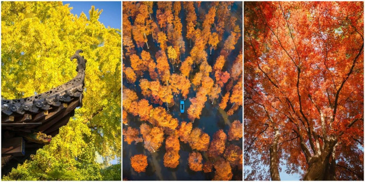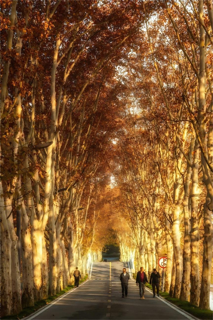 去触摸金色的银杏,拥抱红色的水杉,漫步于如火的枫林。