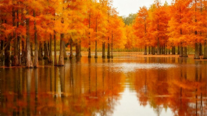 谁说成都只有火锅热辣?初冬白鹭湾湿地藏着秘境。落羽杉林80%变红,进入最佳观赏期,caramel色、锈红、暖橙交织,如上帝倾倒调色盘。树干笔直刺向天空,倒影成双,每个角落都似走进油画。