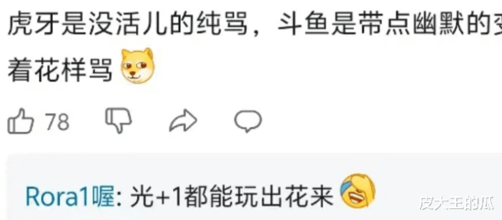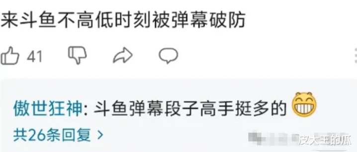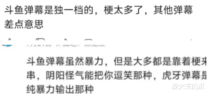 而很多网友也是普遍认为某鱼的弹幕还是非常有趣的,并且认为某鱼的弹幕是独一档的,梗也是非常多,其他的弹幕还是差点意思。还有网友表示某鱼的弹幕是目前唯一能看笑的平台了,某鱼的弹幕能把人逗笑,某牙的弹幕就是纯暴力输出。