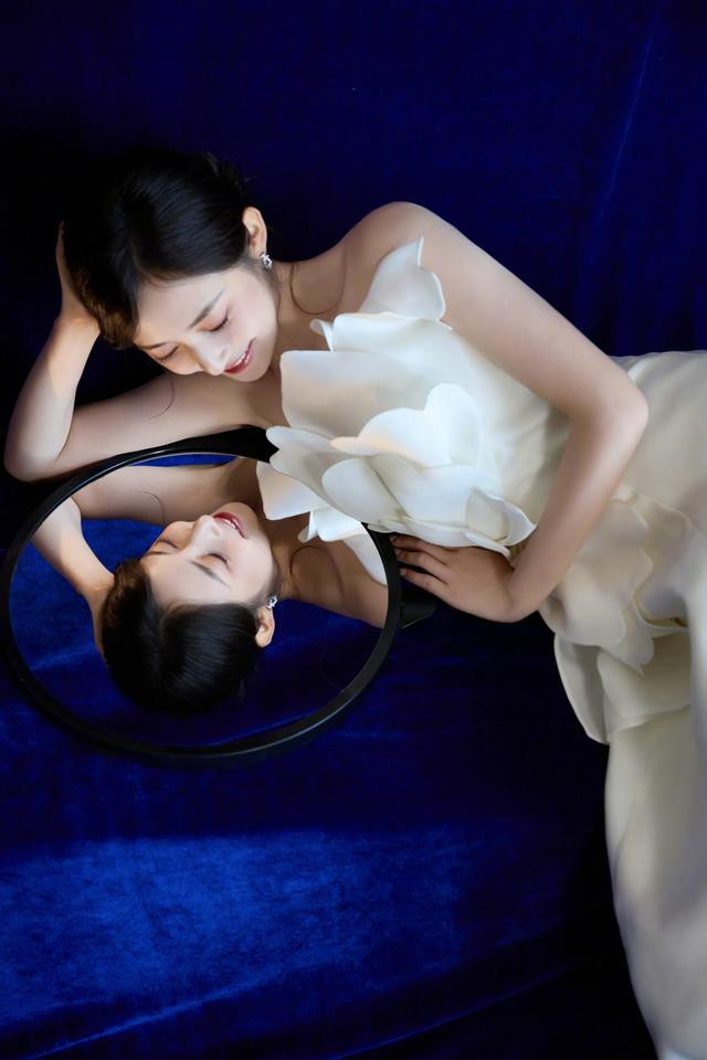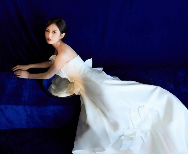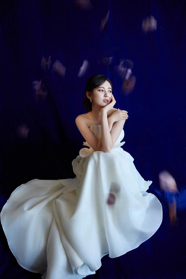 陈钰琪纯白抹胸礼裙