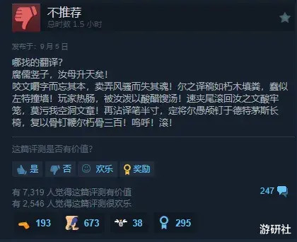 有玩家在差评中指出,翻译与前作留下的回忆、带来的预期产生了矛盾