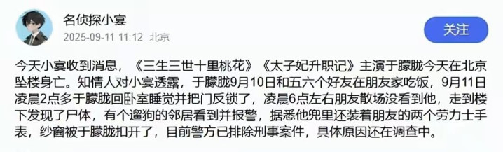 被誉为古装美男的于朦胧突然离世,一时间互联网上议论纷纷,谣言四起,“阴谋论”更是被不少网友搬上了桌。