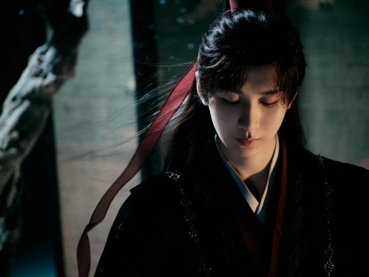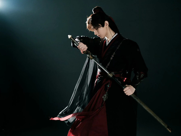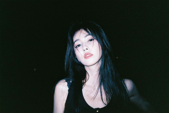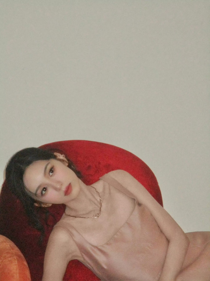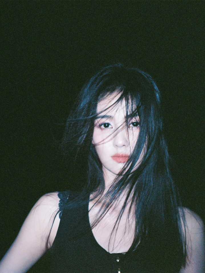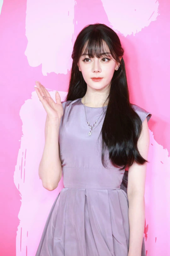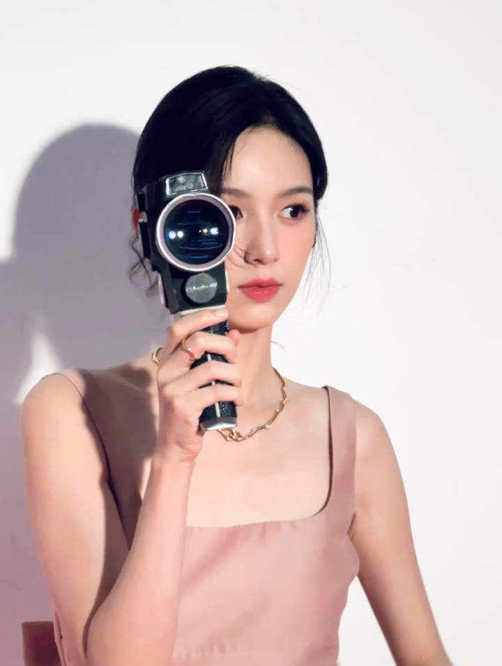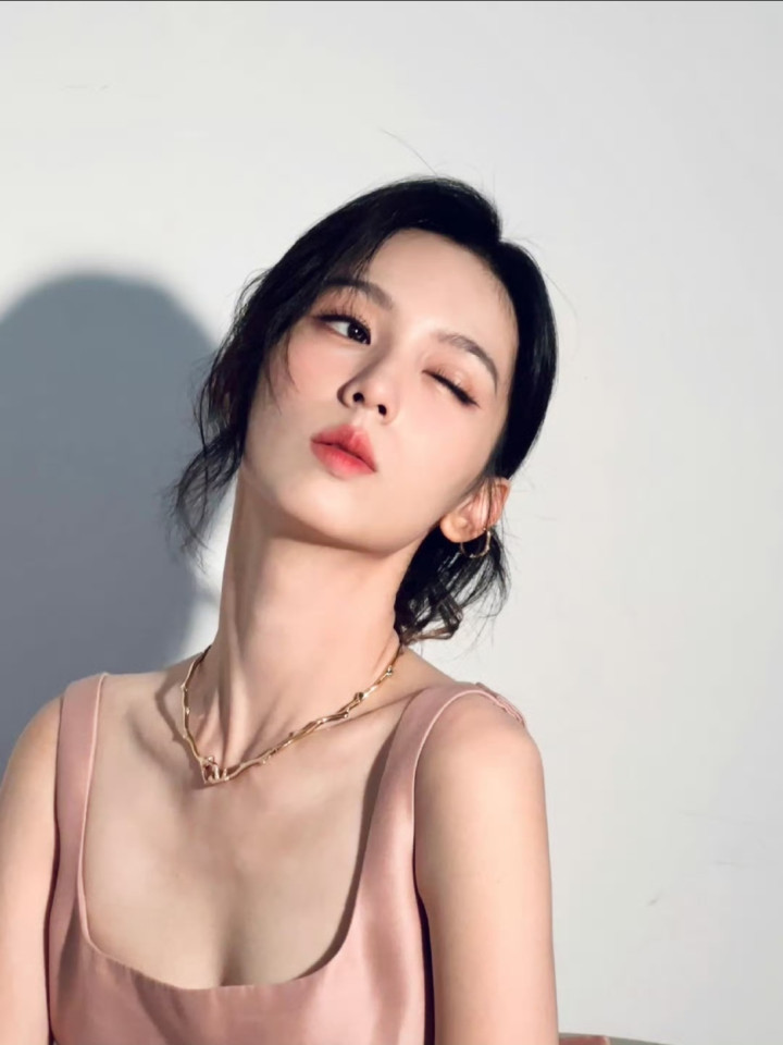首次尝试齐刘海搭配半扎公主盘发,削弱五官明艳感,增添温婉灵动气质。
