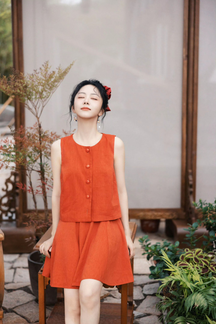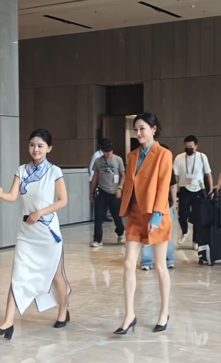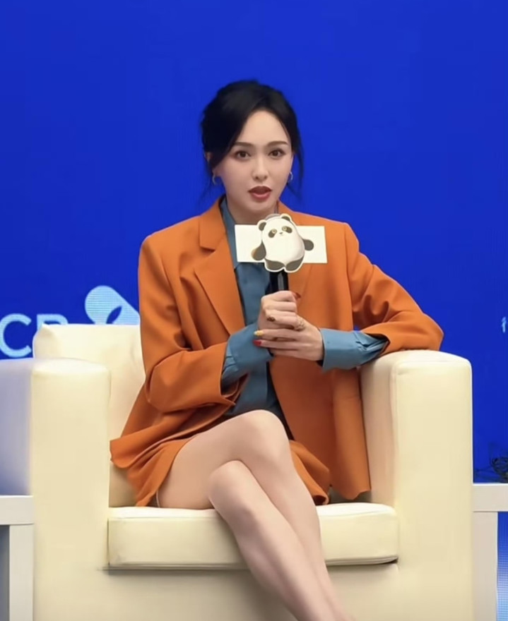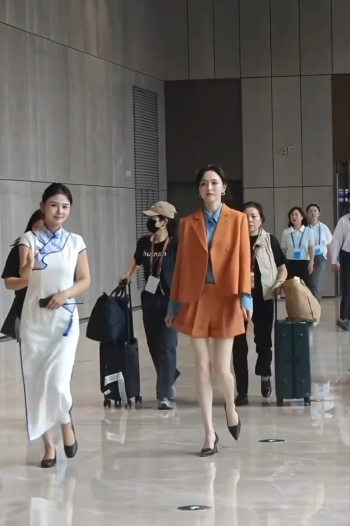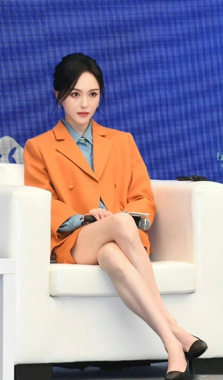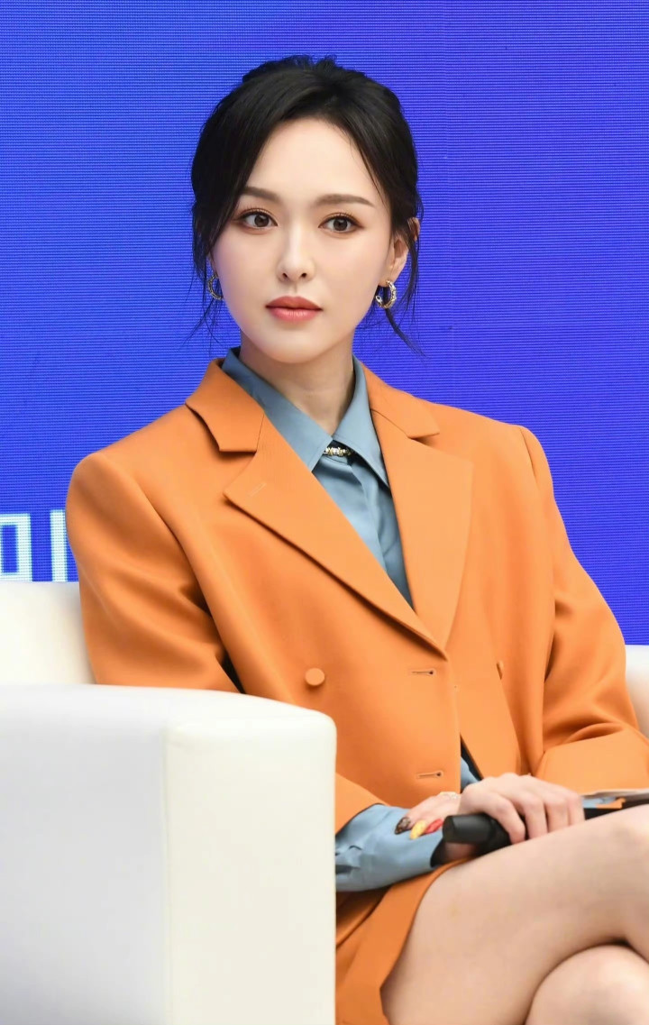 文化论坛活动现场生图路透,身穿亮橙色西装套装,长发温婉盘起,神情认真恬静,周身散发温婉高知感,状态依旧很棒!