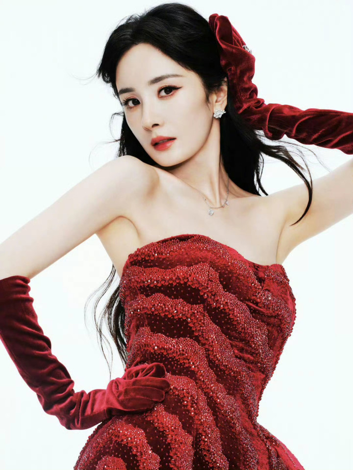 杨幂一袭高定红丝绒抹胸裙,点缀blingbling的闪钻,像一朵热情绽放的烈焰红玫瑰!期待今晚见!