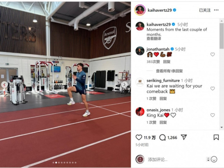 直播吧10月28日讯阿森纳前锋哈弗茨更新社媒动态,晒出康复训练照片。