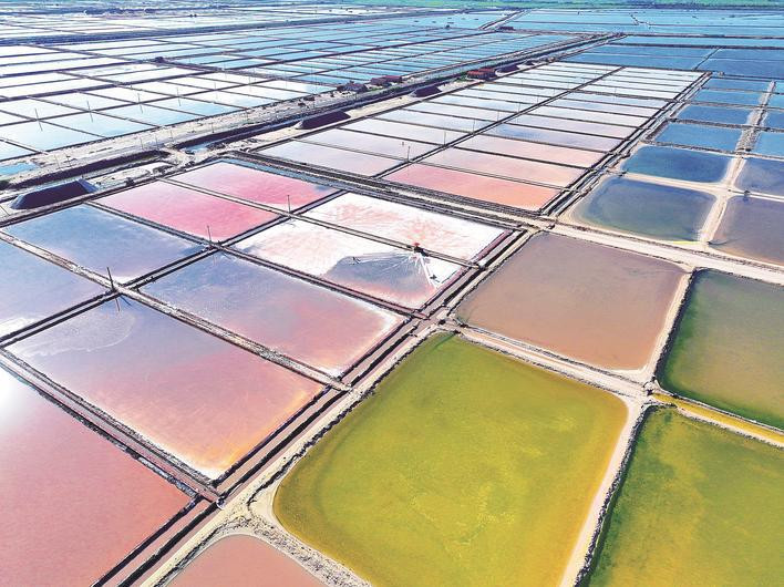 海兴县盐区一望无垠的盐田宛如天然“调色板”。张金元 刘超 摄