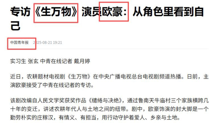 除了这些评价,迟蓬剧外在采访时也曾锐评欧豪,虽然只字不提演技二字,却一针见血,句句戳观众心窝。