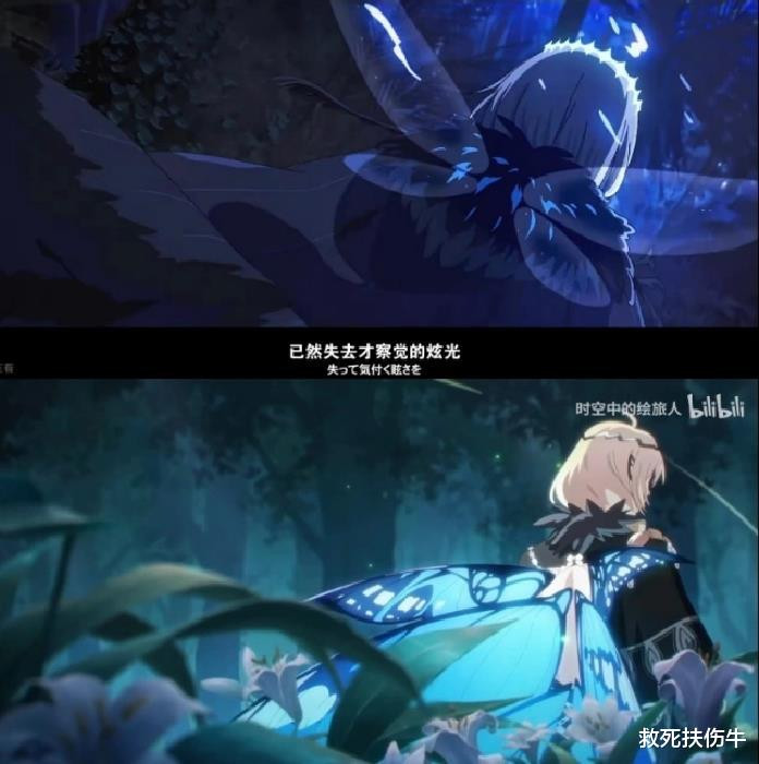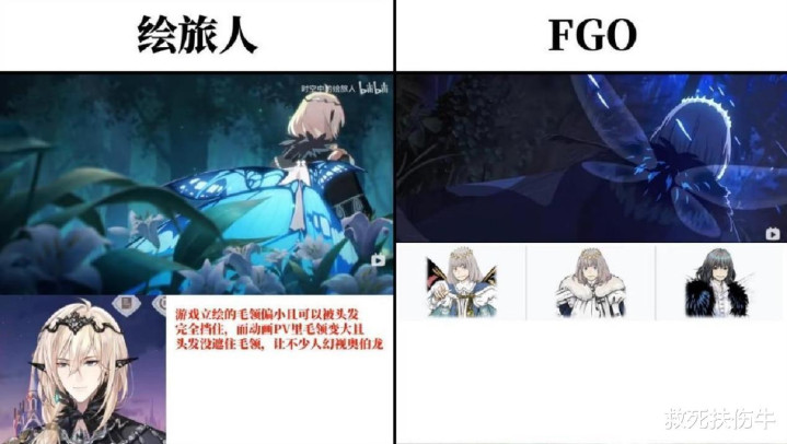 主要是绘旅人路辰其实是长发,然后这截图是被一些玩家质疑明明游戏立绘很小的毛领,在pv里变大,导致背影看起来变成了短发,男主有了奥伯龙的既视感。