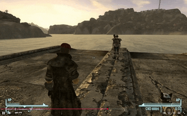 ▲游戏《辐射:新维加斯》里打捞水下的飞机